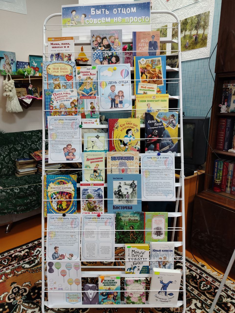 К этому замечательному празднику в Староузелинской сельской библиотеке оформлена книжная выставка-образ «Быть отцом совсем не просто». На выставке представлены издания, которые раскрывают тему взаимоотношений отцов и детей. Среди книг вы найдёте как известные произведения, так и издания, которые будут интересны читателям разных возрастов.