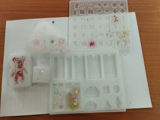 В начале мастер – класса участники познакомились с теоретическими основами работы с эпоксидной смолой, нюансами применения красителей и пигментов, а также с основными секретами работы со смолой.