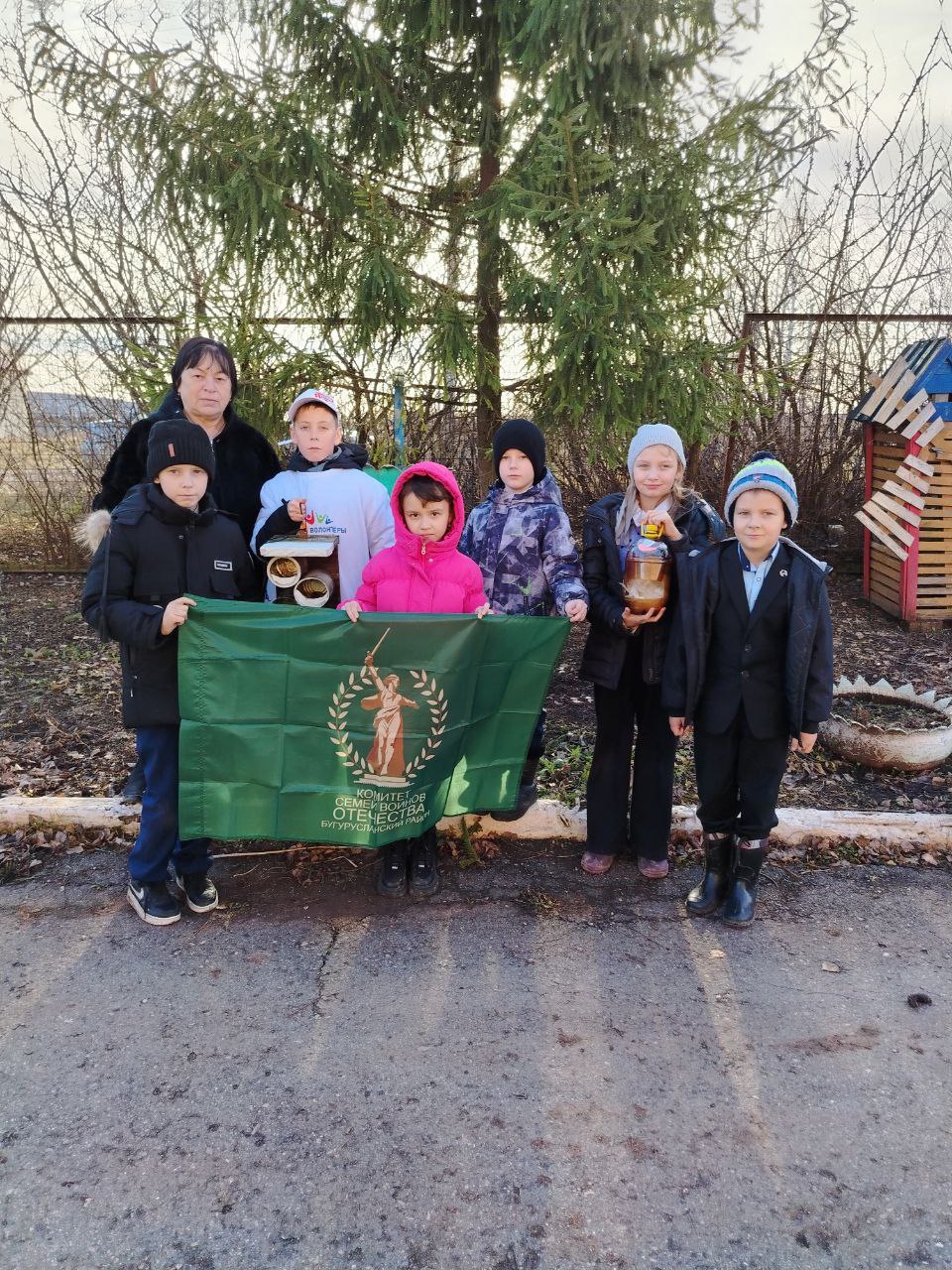 Председатель КСВО Бугурусланского района Алена Ивановна Масловская и учащиеся МБОУ «Староузелинская ООШ им. Героя Советского Союза Д. А. Прыткова», приняли участие во Всероссийской акции «Синичкин день».