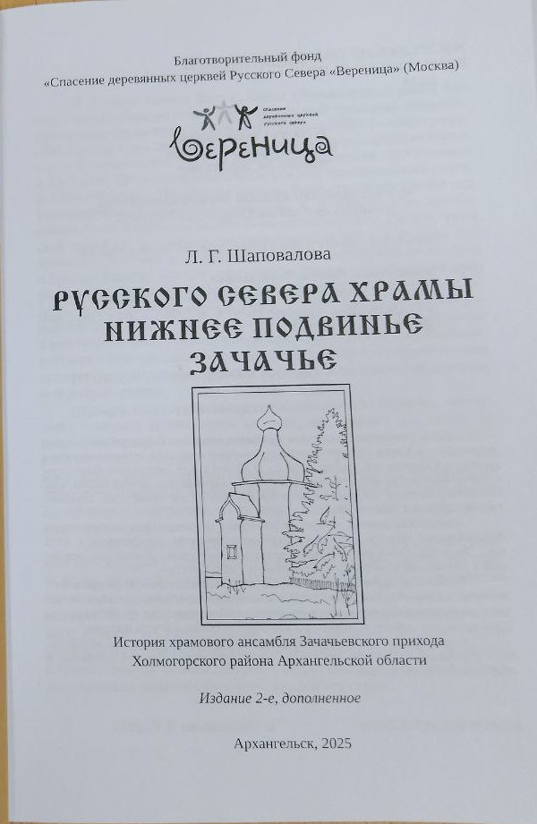 Книга «Русского Севера храмы» повествует об истории храмового ансамбля , сохранившегося в деревне Зачачье близ с. Емецк (Холмогорский район, Архангельской области).